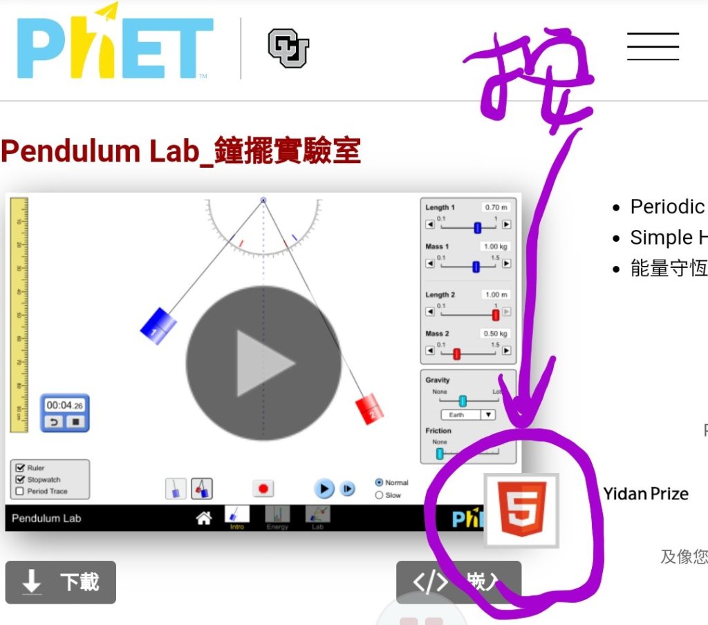 線上中文版 https://phet.colorado.edu/zh_TW/simulation/pendulum-lab